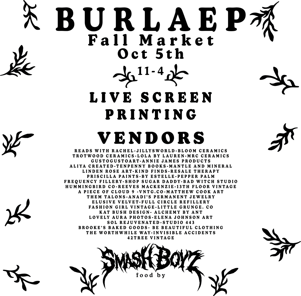 We’ll be at the Burlaep Print and Press Fall Market on October 5th along with some other stellar vendors, live screen printing, and awesome food.